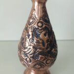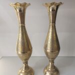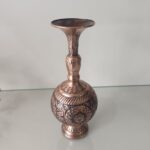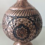 گلدان برنجی مدل قلم زنی کشیده طرح طاووس راکت هندی