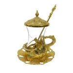 ✅ جنس نعلبکی و پایه لیوان و درب لیوان : فلزی طلایی رنگ ثابت کوره ای