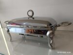 سوفله مستطیل رزلند مدل حلقه نگین ظرفیت ۱.۶ لیتر – دارای یک عدد جای وارمر – جنس بدنه و درب: استیل ضد زنگ ۱۸/۱۰ برند رزلند جنس دسته و پایه : پلیمری با ابکاری فورتیک طلایی قابل شستشو رنگ ثابت ابعاد ظروف بلوری داخل سوفله : طول ۲۵ عرض ۱۶عمق ۵ – تنوع رنگ برای رنگ دسته ها ، پایه ها و دستگیره می باشد.