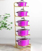 پایه قابلمه 5 طبقه مدل آیرون مناسب قرار دادن 5 عدد قابلمه در سایز های مختلف است. از بهترین ویژگیهای این پایه قابلمه طبقات قابل جمع شدن آن است که براحتی میتوانید هر کدام از طبقات را به سمت پایه اصلی جمع کنید.