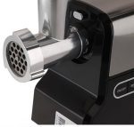 قدرت ۱۶۰۰ وات/ولتاژ ۲۴۰ – ۲۲۰ ولت/فرکانس ۶۰/۵۰ هرتز/حداکثر توان قفل شونده: ۱۸۰۰ وات/دارای مخزن شفاف نگهداری مواد غذایی و متعلقات/سینی و گلویی آلومینیوم/بدنه و قاب استیل/دکمه آزاد کردن آسان گلویی/دارای سه عدد شبکه ریز، متوسط و درشت/دارای کوبه دستی- سوسیس ساز و کبه ساز