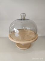 کاپ کیک چوبی استند دار  دارای ظرفی با روکش چوب است که روی آن یک درپوش شیشه ای شامپاینی قرار می گیرد و محتویات داخل آن نمایش داده می شود. از این ظرف هم در دکور منزل و هم در پذیرایی می توانید استفاده کنید. برای شستن این ظرف بهتر است آنرا با دست بشورید و سریع خشک نمایید. از این کیک خوری در منزل و کافی شاپ ها و رستوران ها می توانید استفاده نمایید. این مدل را می توانید به دو مدل روی استند فلزی طلایی رنگ  و بدون استند (پایه) استفاده نمایید.