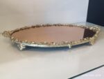 سینی برنزی بیضی محصولی شیک و جذاب در سایت ما می باشد که نه تنها به عنوان سینی پذیرایی بلکه به عنوان باقلوا خوری یا شیرینی خوری روی میز جلومبلی، در میز یلدایی، در سفره هفت سین یا هر نقطه دیگری از منزل شما عزیزان می تواند مورد استفاده قرار بگیرد. این سینی از جنس فلز آبکاری شده فورتیک می باشد که رنگ طلایی درخشان آن جلوه بی نظیری به این محصول داده است.