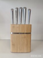 ۱ عدد چاقو سرآشپز ۱۷ سانتی -۱ عدد چاقو نان ۲۰ سانتی -۱ عدد چاقو برش دهنده ی ۱۹ سانتی -۱ عدد چاقو برش دهنده ی ۱۱ سانتی -۱ عدد چاقوی پوست کن ۹ سانتی -۱ عدد پایه نگهدارنده آهنربایی -قابل استفاده با هر دو دست -برند معتبر ایتالیایی